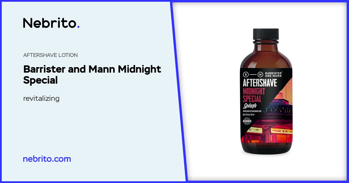 Barrister and Mann Midnight Special is an aftershave that combines an elegant «night» fragrance with high quality soothing and astringent properties. It contains provitamin B5, which has a powerful regenerating and moisturizing effect.