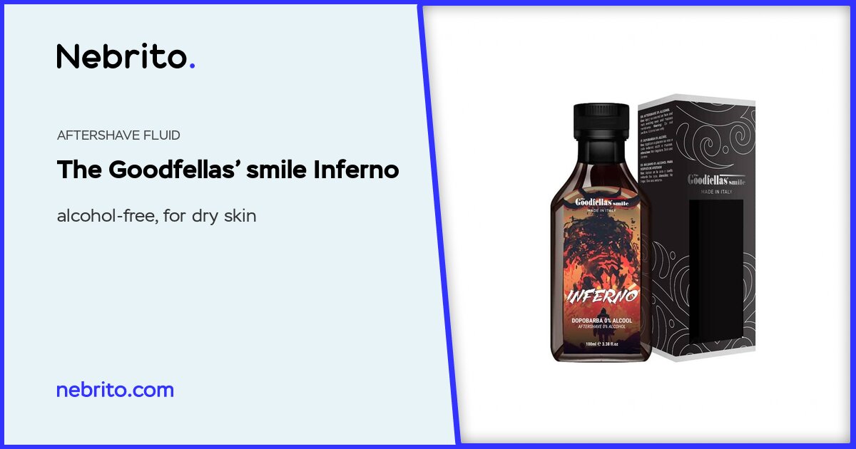 The Goodfellas' smile Inferno is a witch hazel-based aftershave fluid made in Italy. It contains no alcohol, does not irritate the skin, suitable even for sensitive skin. Heals cuts, relieves itching and tightness. 95% of the composition — components of plant origin.