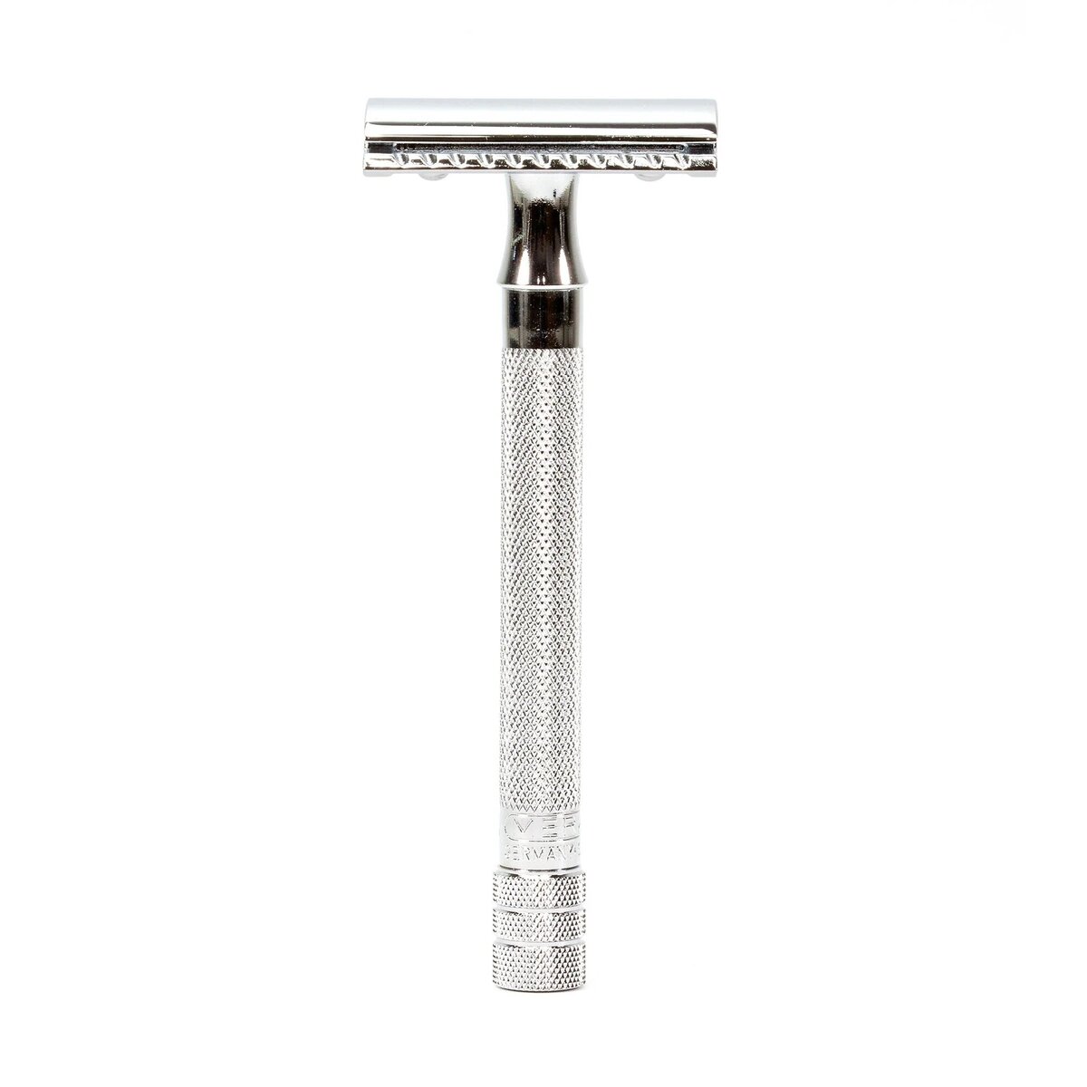 The Merkur 23 is time-tested: it has been one of the most popular traditional shaving models on the market for a century. It has the same head ergonomics as the Merkur 34, but is a three-piece model. The long handle makes shaving comfortable and confident, while the closed comb type makes the razor suitable for traditional shaving as well as for body or beard grooming.