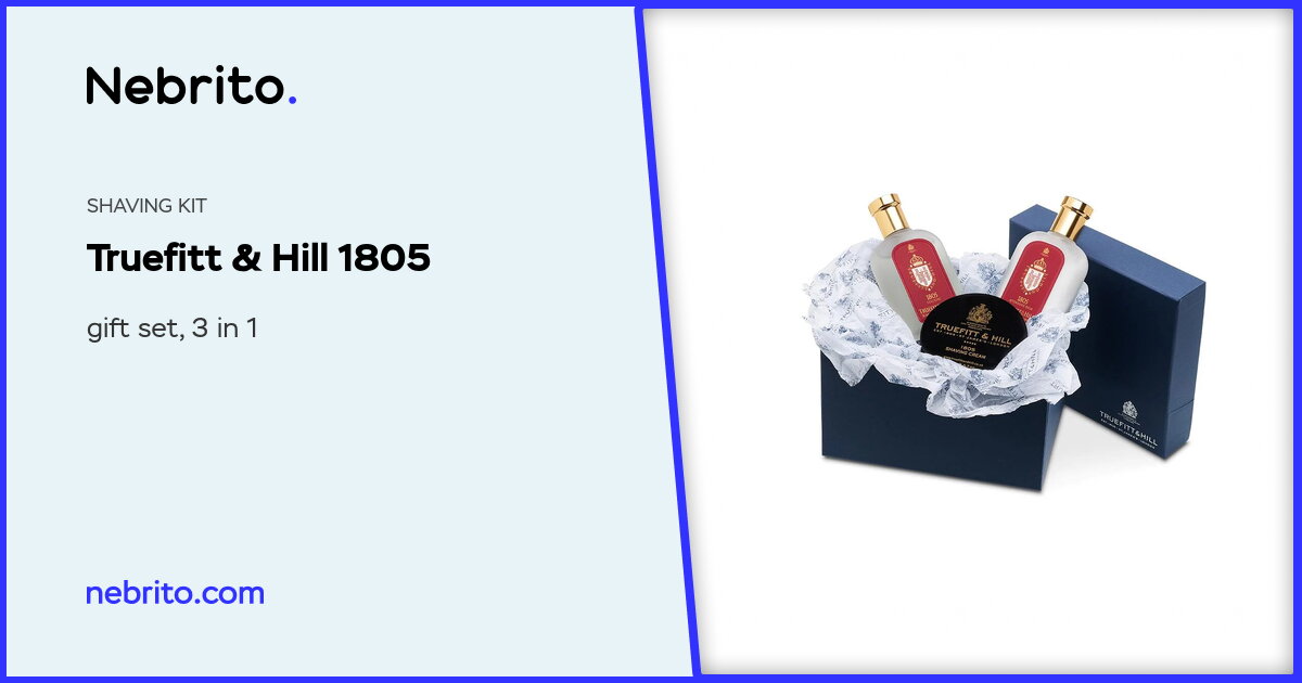 A shaving kit from the 1805 collection by the British brand Truefitt & Hill. Includes shaving cream, aftershave balm and cologne.